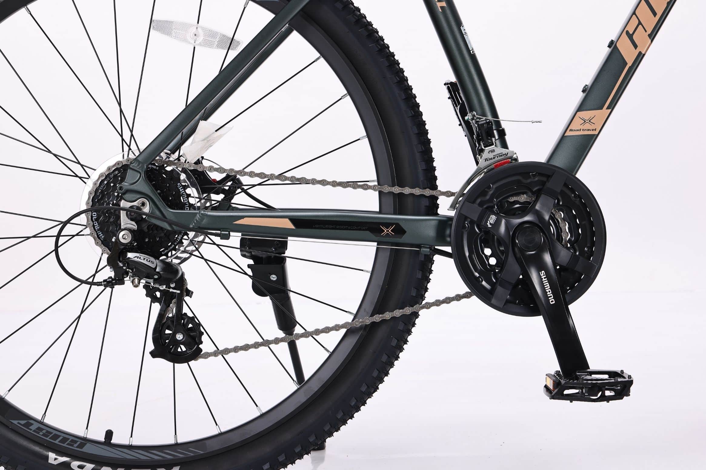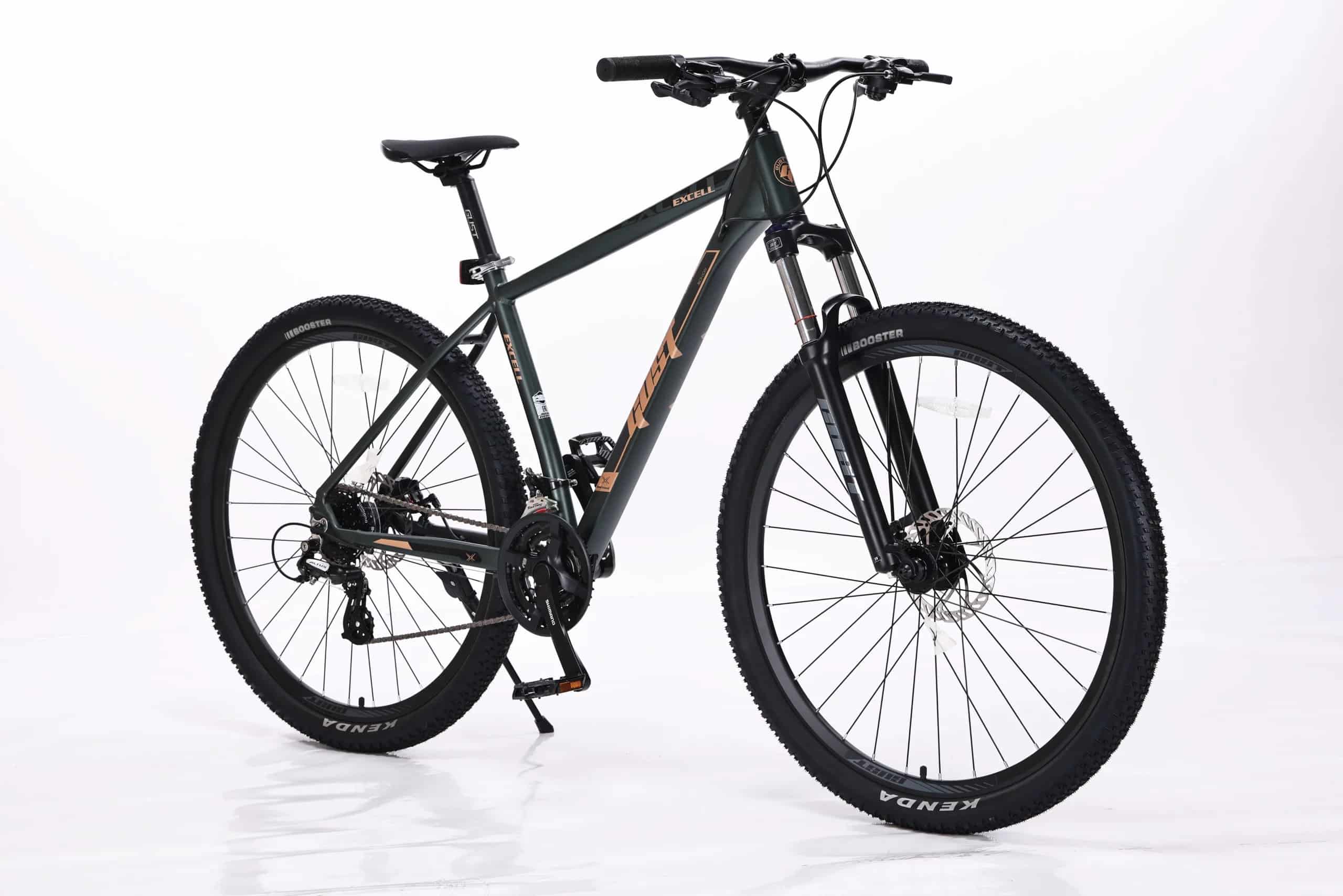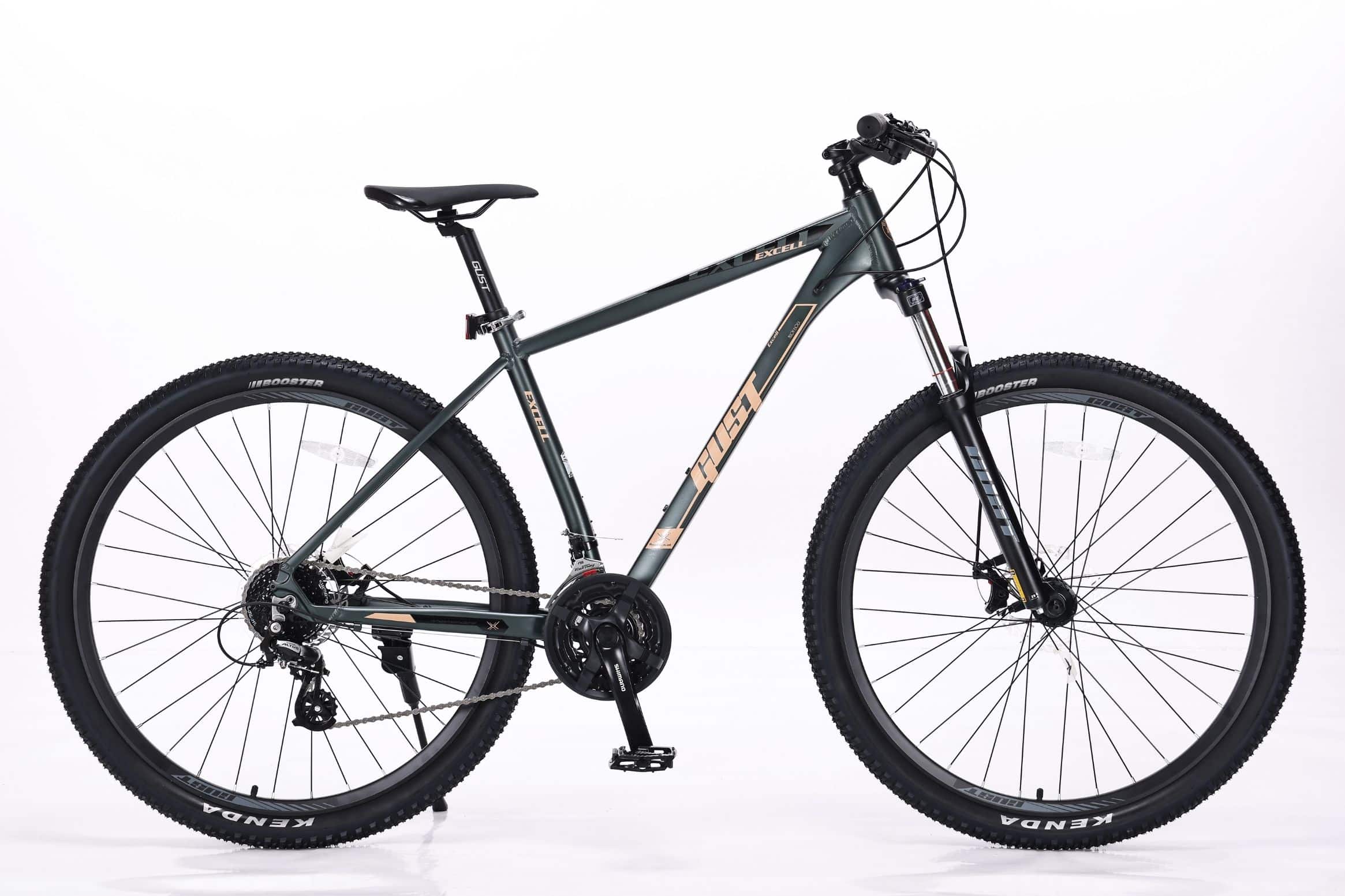 Gust Excell 29” Green 2026 ir viegls un universāls kalnu velosipēds ar alumīnija rāmi un 29 collu riteņiem, kas nodrošina stabilu un komfortablu braukšanu gan pilsētā, gan uz meža takām. Modelis aprīkots ar 24 ātrumu Shimano 3×8 transmisiju, tostarp Shimano Altus M310 aizmugurējo pārslēdzēju un CS-HG200-8 kaseti, kas garantē precīzu un vienmērīgu ātrumu pārslēgšanu. 100 mm amortizācijas dakša ar bloķēšanas funkciju palīdz pielāgoties dažādiem ceļa segumiem, savukārt mehāniskās disku bremzes nodrošina drošu bremzēšanu jebkuros laikapstākļos. 29×2.2 KENDA riepas, dubultie alumīnija diski un aptuveni 11 kg svars padara šo velosipēdu par lielisku izvēli aktīvai ikdienas lietošanai un brīvā laika izbraucieniem.